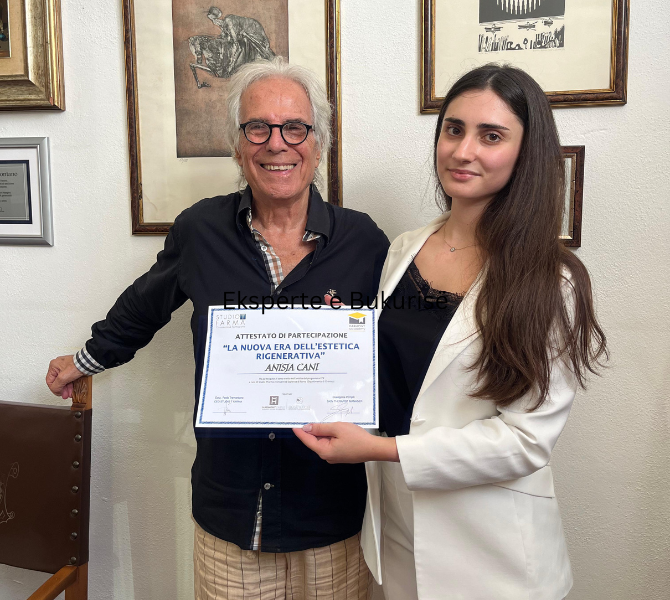 Më pas u çertifikova në Romë dhe Milano si eksperte e bukurisë. Çertifikatat e marra: Kimia e Kozmetikes & Epoka e re e estetikes rigjeneruese (për lëkurat me barrier të dëmtuar dhe që kanë nevojë për rikuperim), Ndërkohë trajnimet e ndryshme të bëra në Milano nga kompania Revivre Milano përsa i përket sëmundjeve,kurimit dhe problematikave të SKALPIT & GJATËSISË SË FLOKUT.